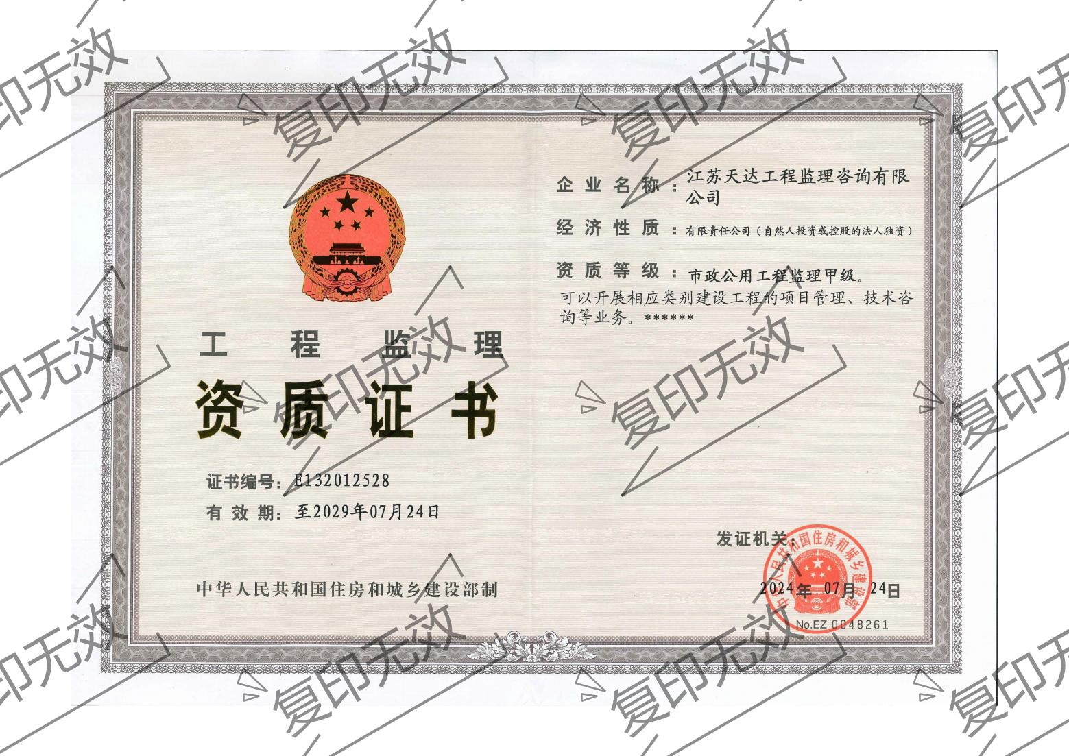 1、市政公用工程监理甲级