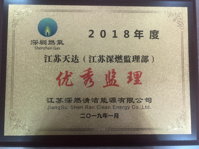近期江苏深燃公司对优秀合作单位进行了表彰,天达监理江苏深燃监理部获得最佳监理奖。