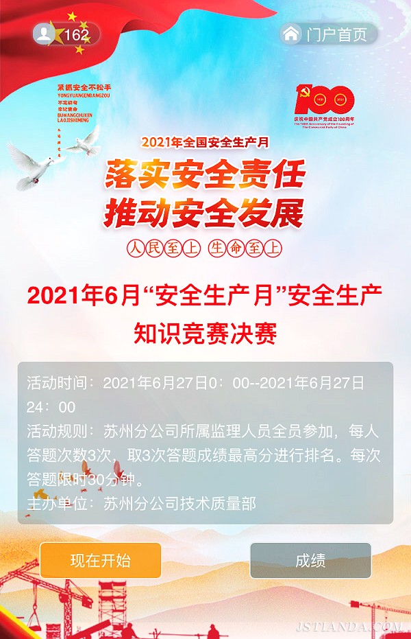 6月27日,天达监理苏州分公司2021年“安全生产月”安全生产知识竞赛圆满结束,本次安全生产知识竞赛分为练习和决赛两个阶段,采取企业微信学习中心线上答题的形式进行。