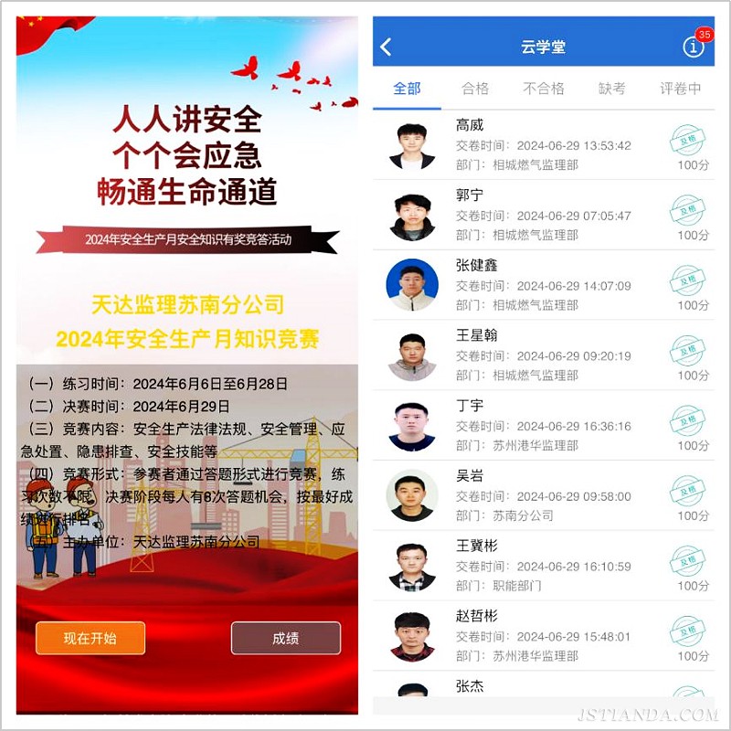安全生产知识竞赛是苏南分公司一项延续多年的“传统保留节目”,今年的知识竞赛题库不仅包括安全生产法律法规、燃气工程现场安全管理等内容,还增加了安全生产相关事故案例、有限空间作业、隐患排查、应急处置等方面的安全知识。活动从6月6日开始至6月29日圆满结束,在练习阶段,累计完成练习2000余次,98分以上23人,占比超过30%。决赛于6月29日上午开始,每人限3次机会,每次不超过90分钟,取最好成绩,按照得分最高,用时最短进行排名。截止当天20:00已全员完成答题。经统计,成绩全部合格,98分以上45人,占比超过66%,有30人达到满分,其中,相城燃气监理部、苏州港华监理部更是实现全员满分,竞赛整体成绩较上一年度再创新高。